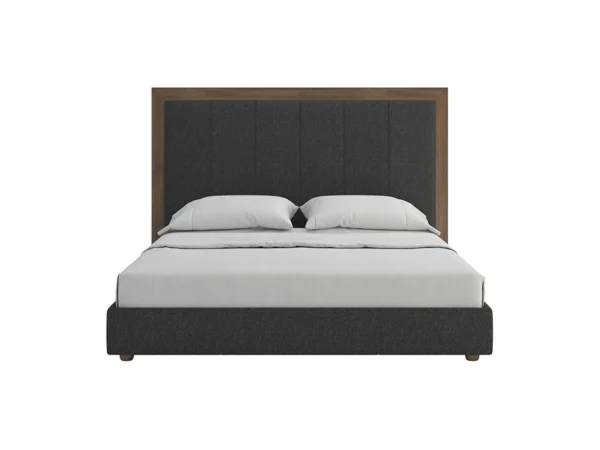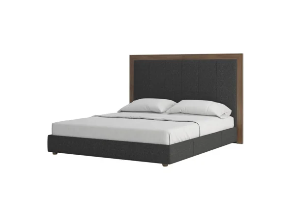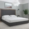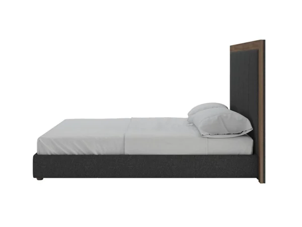 La chambre à coucher LENA séduit par son style chic et intemporel, parfait pour créer une atmosphère élégante et apaisante. Sa tête de lit tapissée, ornée de bandes verticales et de finitions en cuir synthétique, apporte une touche de sophistication, tandis que son encadrement en bois noyer gris authentique souligne son charme naturel. Le sommier à structure métallique et lattes en bois massif assure un confort durable et une grande stabilité.