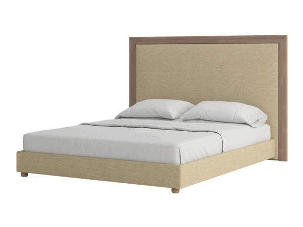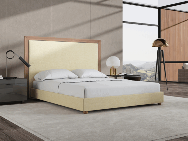 Entièrement tapissé avec des lattes de suspension en bois massif habillées en mousse et tissu en toile 100% OLEFINE ECO-FRIENDLY et EASY CLEAN. Pieds en bois massif hêtre naturel. |