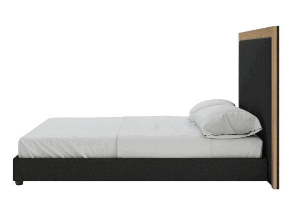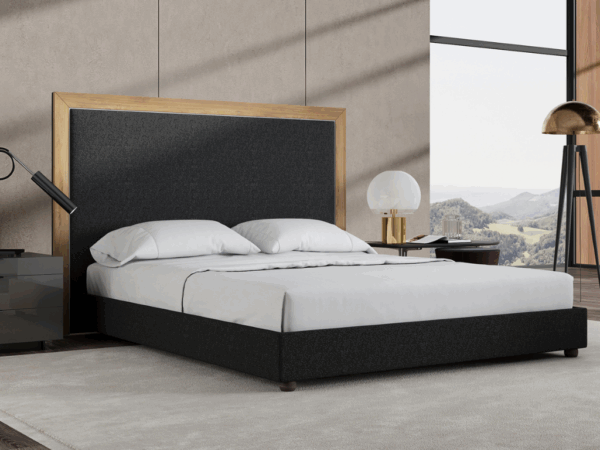 Panneau tapissé avec un garnissage intérieur en mousse mi-ferme et habillé en toile 100% OLEFINE ECO-FRIENDLY et EASY CLEAN. Passepoil décoratif en cuir synthétique et encadrement en bois mélaminé, chêne brun authentique. |